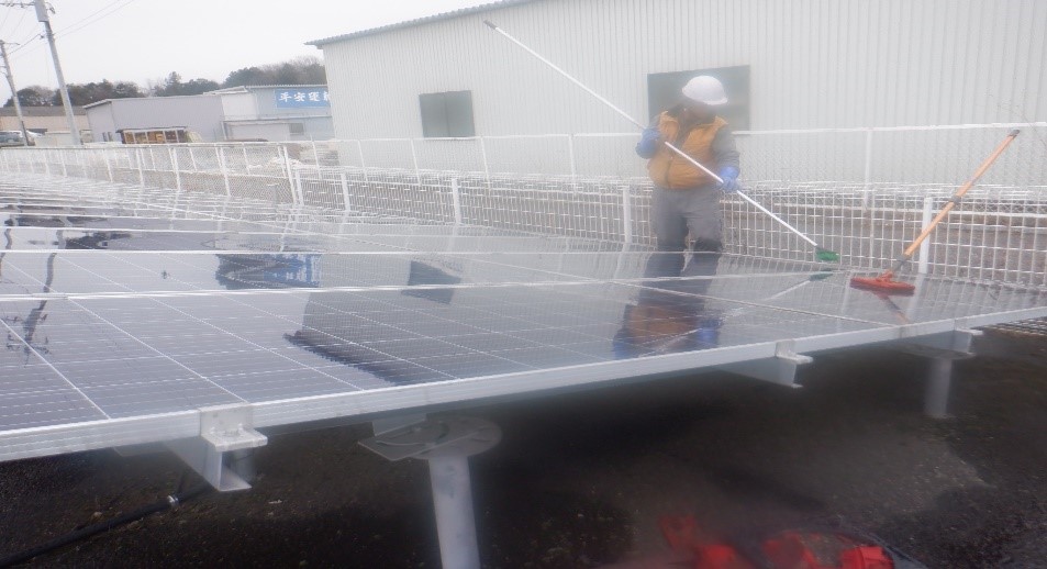 群馬県館林市の太陽光発電所のパネル洗浄(機械洗浄)
